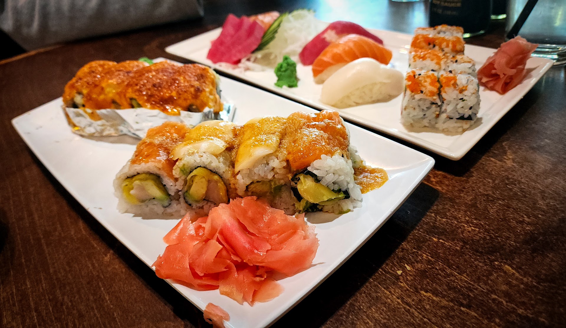We were sat quickly and greeted by our server quickly. He brought out waters within a minute of our seating. My friend ordered a plate, I ordered 2 sushi rolls and an app to share.