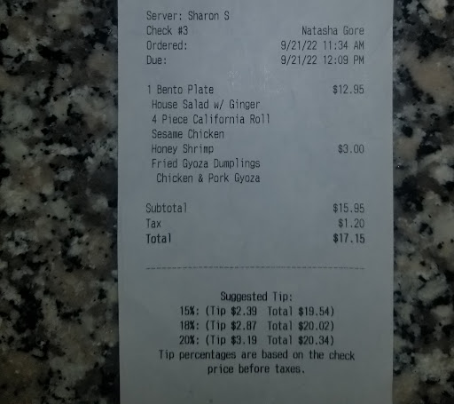 Their website isn't set up in a way to take the orders properly, and the customer is blamed on the back end, at least that was my experience. I ordered a Bento Box with Sesame Chicken, and the website seems to also offer a way to add additional protein, like Honey Shrimp, which I did. I was shocked to learn that the extra protein option is actually a seafood upcharge, making it my primary entree choice. That would have been fine, except that it doesn't then void out the original order of sesame chicken. You can see my receipt in the photos, and understand why I believed that I had ordered Sesame Chicken with a side of Honey Shrimp. It seemed like the staff understood the tech glitch, but still wanted to explain to me why I was in the wrong. To their credit, after I pressed the issue, they did give me the sesame chicken at no additional charge, which I believe is fair based on how their website is setup. Oddly enough, Honey Shrimp isn't even an option on the in-person menu in the Bento Box section!