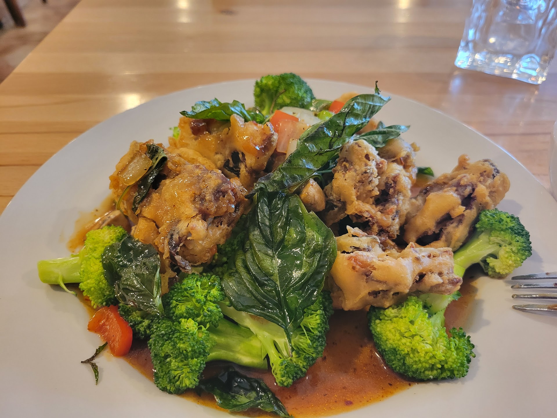 Read moreI had given up on Thai cafe. I use to be a big fan of their Pad Thai and it had gotten way too laden in sweet sauce. After a year of only ordering for visiting family, we went back yesterday and loved every dish we ordered. The Crispy Duck, which we all shared, was a new dish for us--juicy, easy chew with none of the greasy or fattiness duck sometimes delivers. The sauce is a pleasant savory sauce with intermittent kicks of spice. The pot stickers, which had never lost their charm still hit the spot with their tasty balance of crispy edges and soft, center dough wrapped around flavor bursts of chicken and chopped veggies. The pot stickers are a good choice for every one and a special delight for those who need their food mild as was the case for most of my dinner mates. The Pineapple Rice and Silver Noodle Soup were also a hit with the "we need it mild" family, while I enjoyed the Spicy Beef Salad, which delivers on its name with more...