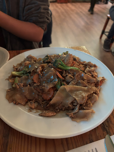 My sister and I came in on a Friday night and we were pretty worried at first because there was a line almost out the door. But thankfully, we were seated within less than 10 minutes. We ordered the following: Thai Iced Tea Tom Kha Chicken Pad See Ew