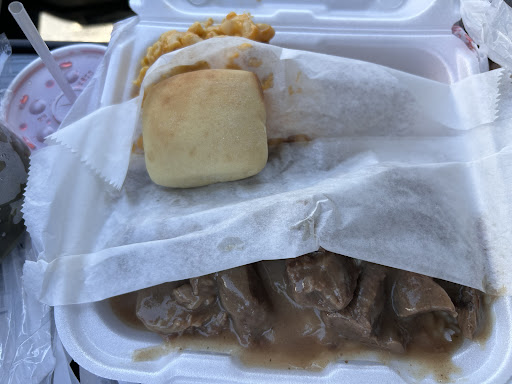 Returned and the fried chicken was sold out. But the owner said there was a long line for the fried chicken hours ago when it opened. On the buffet line were baked thighs and drumsticks in gravy, fried gizzards or beef tips. The baked spaghetti looked good but not enough left for a serving. I selected beef tips and the pieces are large, similar to stew meat. The gravy is very good. The rice does not come with the tips so it became one of my sides. My 2nd side was macaroni and cheese. I was fooled because they finished it in the oven to brown the top but it’s my least favorite style due to the cheese sauce. Yet very traditional in NC restaurants. It also came with a small toll and a choice of drinks. I chose the punch, cherry kool-aid in a 8-10 ounce cup. I also wanted to try the collard greens. They were just ok for me, prepared conservatively without meats, onions, garlic or vinegar. I don’t mind stems but if you do, they come with them.