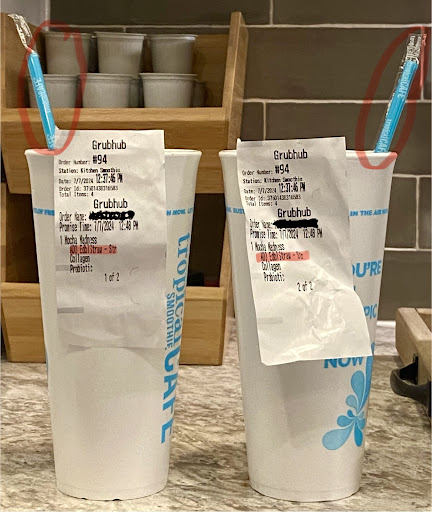 I ordered two mocha madness smoothies for delivery via Grub Hub. They were delivered quickly and seemed fine at first, but we got regular plastic straws instead of the edible straws we paid extra for. When we started drinking the smoothies, we noticed a very strong perfume taste throughout the smoothies. We transferred the drinks to new cups, thinking maybe the perfume was on the styrofoam cups, but it didn’t help. Because of the cost, we tried to power through, but after a few sips, the overwhelming flavor of perfume in our mouths made it impossible to keep drinking.