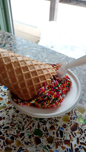 DINING ROOM IS CLOSED. OUTSIDE SEATING ONLY. ICE CREAM IS GIFFORDâs, NOT UNH DAIRY ANYMORE. Outside is perfect if you just want ice cream. We went there for dinner with children and grandparents. You have to order at the outside window. All food is served in disposable containers. Loads of plastic. They do not have trays so you have to juggle your multiple containers to your table. Tables were sticky and dirty. There was no one wiping them down or any products provided to do it yourself. The food was average. Biggest bummer was that the ice cream is Giffordâs. We were recently at the U. Of Vermont dairy bar where all ice cream is made with milk from their dairy cows. Positives: The train came by a few times which was unique and entertaining. The weather was nice and being a part of a family gathering is...