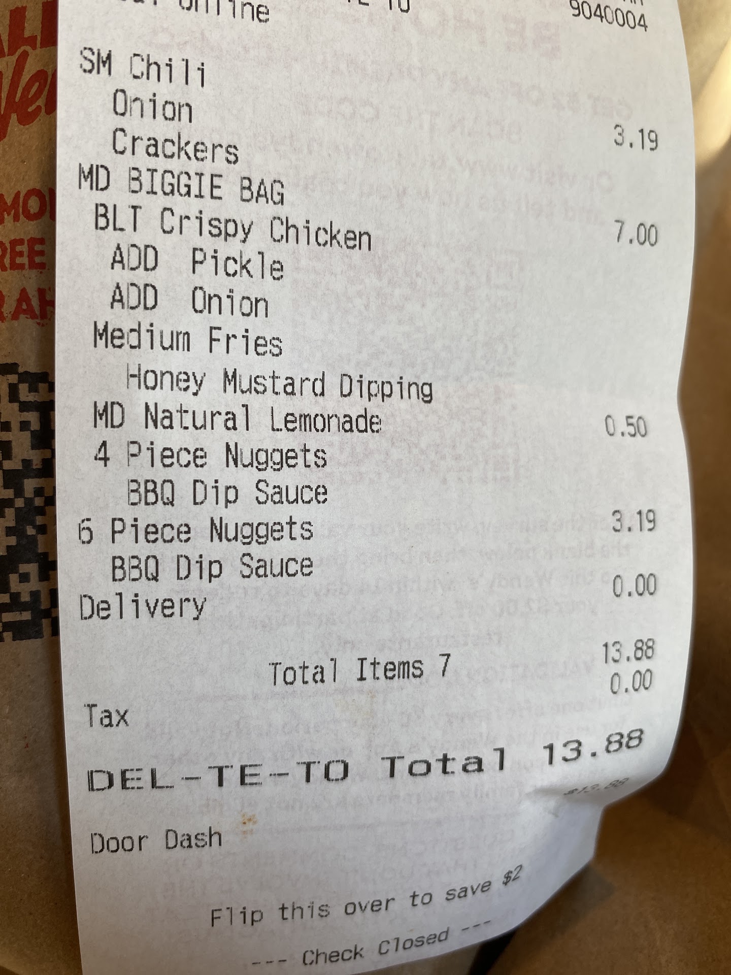 Read moreThis store has been notorious for giving out wrong orders. I am home sick and I placed a mobile order for family through grubhub at 8:59pm the restaurant gave my driver two doordash orders that where obviously not ours. My order was canceled because according to grubhub they had lost my order. I reordered it at 9:53pm. My driver got the food delivered at 10:14pm, the restaurant sent me the 2 hour old food instead of making fresh food. I work in food industry it is extremely unhealthy to eat food that has been sitting at room temperature past hour and half. Not to mention the food wasn't in the restaurant when the driver went back so someone else had take my food from the restaurant and they still thought it was ok to resend this old food. The food that got delivered at my place we opened and touch and I bet those people got their old order too because this place doesn't care about it patreons. Needless to say the food was unedible I paid nearly $60 twice, and two and a half hours later and we still had no food. Would not recommend this location to anyone and will actually always...