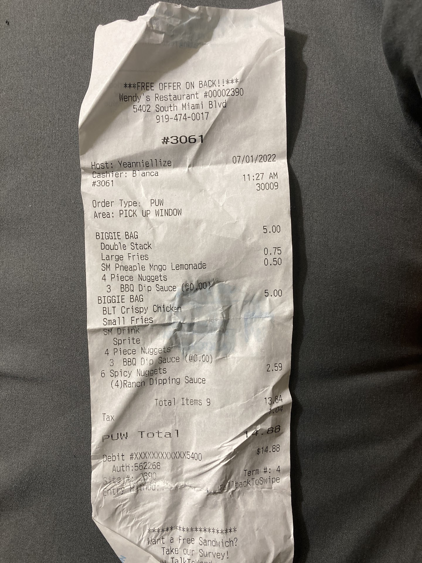 Read moreThis is the worst example of what is otherwise a wonderful company. Drive through was slow, had to give my simple order three times. Waited to pay, waited more for my food. Then, when I got home, literally everything I ordered was wrong. I called, got hung up on, called back talking with one person, explaining my issue. She literally just handed the phone to someone else, and I got to start all over with my issue. The manager said she couldn't do anything for me unless I drove back, but she'd fix my order, refund my money, and give me a future order on the house...at least that's what I think she said. She was very hard to understand over the phone. On arriving, I was treated to another wait in the drive thru. Had to explain the issue again. I may have gotten a refund, but I didn't get a receipt at any step in this process so who knows. No food, no freebie. Hour of my life for a 4 item order, which I didn't even get. Dave is rolling over in his grave. I won't be back to this location, and I highly recommend anyone reading this to avoid it if you value your money,...