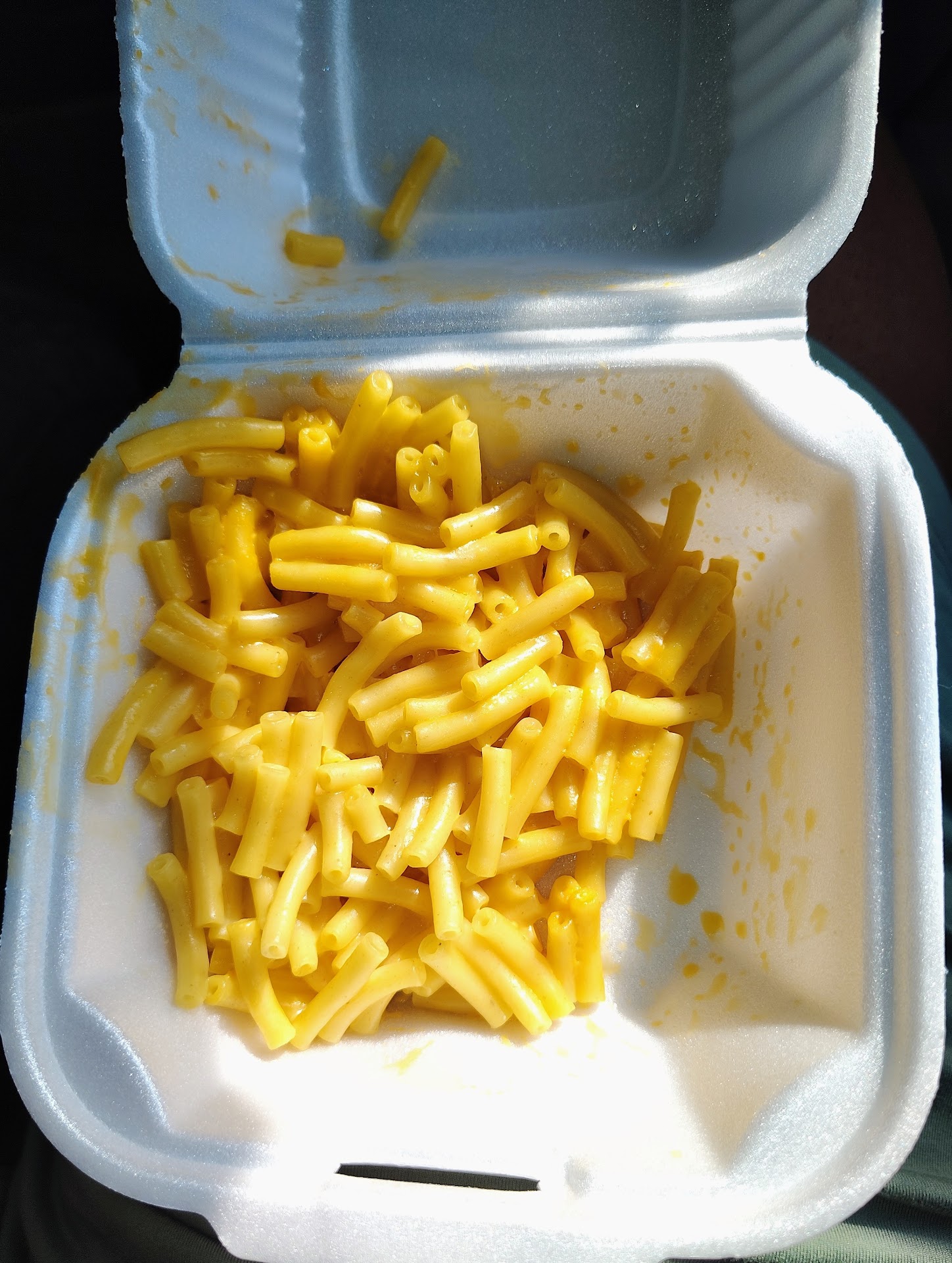 Let’s start with the mac and cheese or as they call it, crafted mac and cheese. Crafted. Like it’s a fine wine. Like Michelangelo chiseled it out of aged cheddar in the Sistine pantry. What I received was not mac and cheese. It was a cheese creature. It had mass. It had a gravitational pull. It stared into me and whispered, “You will not survive this.” The noodles were in open rebellion some still crunchy, some disintegrated like ancient scrolls. And the cheese sauce? Oh no, friend. That wasn’t sauce. That was sentient glue with trust issues. I didn’t eat it I escaped it.