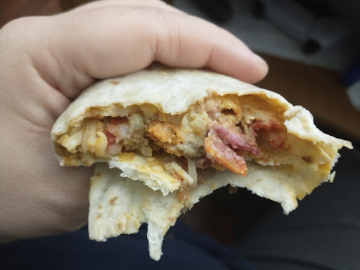 I got the Breakfast taco. They were almost all the same that you see in the photo. This was suppose to be the Egg, Cheese and Bacon. All I see is just 1 little piece of egg.
