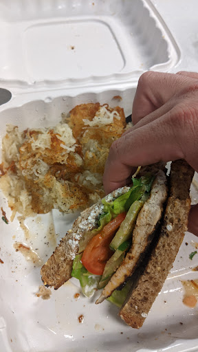 Read moreI've heard great things about this place for years and finally had a chance to stop by and pickup some lunch on my break. Sadly the hype did not deliver. I was disappointed with my blackened chicken sandwich and hash brown combination. The bread was a borderline stale or a generic wheat, that, in combination with my overly cooked (and under-seasoned) chicken was just a very gristle, bland sandwich. The only saving grace was the cucumber sauce which had potential to really make it a next level sandwich- just not in this case unfortunately. I was also less than impressed with the hash browns too as they were swimming in oil by the time I got back to work (Crete) and had no type of flavor. I ended up salvaging the potatoes and chicken with the provided hot sauce- which was also another good condiment, just not the way I intended to enjoy it. It's also worth noting I grabbed lunch for my coworker whom was also unimpressed with his wrap, citing a similar dry experience. Ultimately I feel like we overpaid way too much for what we received and I will not be coming here for lunch again. The house made sauces I had do give me hope for the place and I love to support local so I'll probably give breakfast a chance to see if the hype delivers there- just probably not...