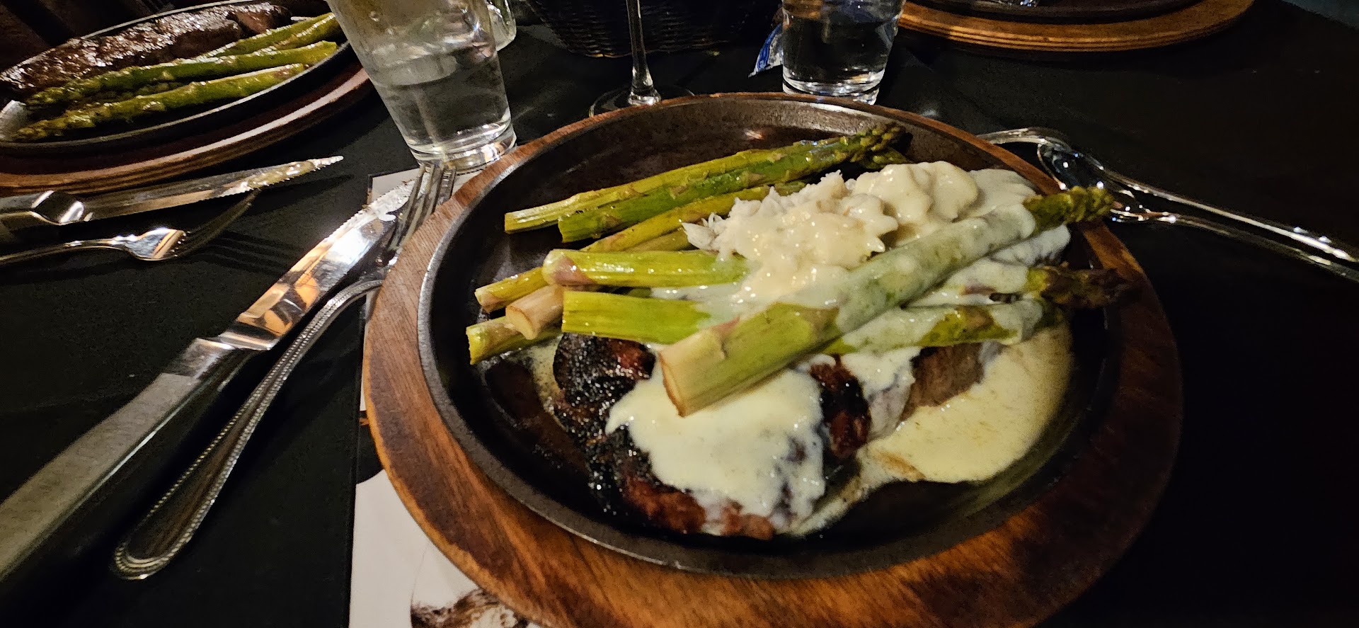 Read moreAfter hearing advertisements on the radio for a long time, my family and I visited this place for the first time, having high expectations. We were seated promptly. After about 10 minutes a server came to our table and took our drink order and food order, since we had plenty of time to look at the menu. Our drinks and appetizers came in a reasonable amount of time. But we waited a long time for our meal. We had the $38 Bone In Ribeye, $34 Porterhouse, and $17 Pineapple Glazed Chicken. The food came out hot. The 2 steaks were each a little overcooked and needed more seasoning. The chicken was good as were all the sides. For dessert we ordered bread pudding and fried bread pudding. Each was quite tasty. We were in the restaurant for 2 hours and 20 minutes; much longer than expected. Much of the time was spent waiting on our meal. It was a Friday night but it wasn't overly busy. Sadly, it wasn't a good...