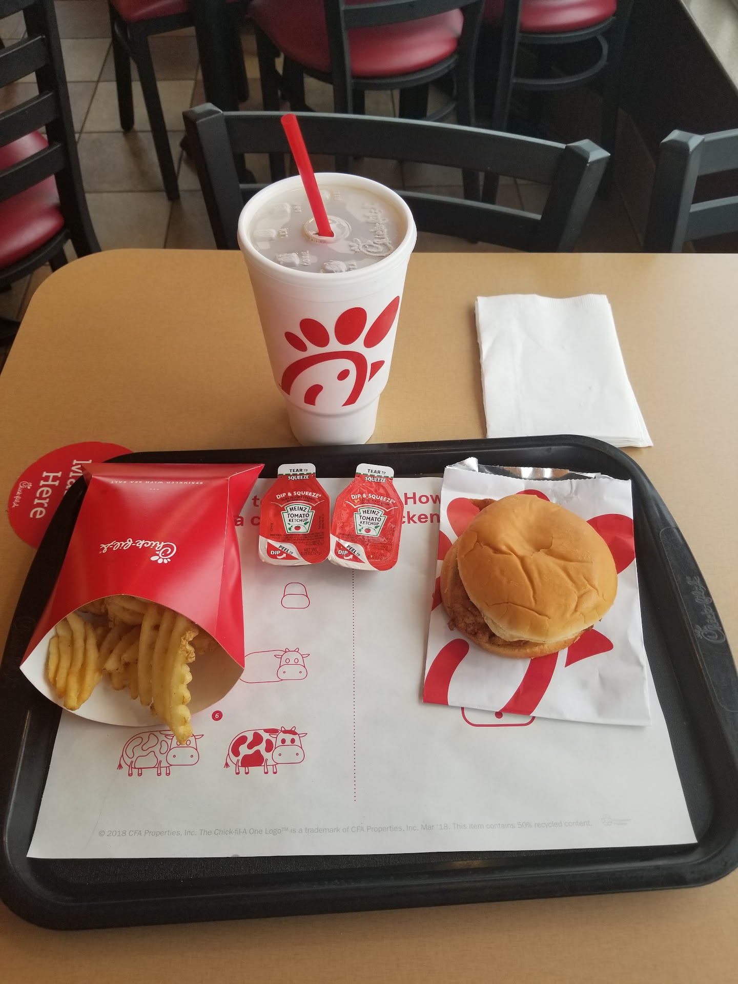 Read moreThis one makes me a little sad.....I have been a big fan of Chick-fil-A in Dyersburg since day one. I used to eat here literally every day for breakfast and sometimes every day for lunch.......not going to lie in the last year or two. The food has just not been as good as it used to be. Seems like the chicken nuggets are always old, cold, and small inedible chunks instead of having some meat on them. The last 3 times at least that I got my chicken minis for breakfast, I ended up throwing them away ,I decided not to get breakfast anymore after the 3rd time. it is way too expensive to be throwing in the trash. The 2 lane drive-through is nice. Their lines are not nearly as long to go through the drive-through anymore, so that's a plus. The remodel they just did makes it very hard to go in and stand to wait on your online pick-up order. It is way too crowded at the doorway now even though you're trying to move around to the other side of the door to stand and wait. You're always in someone's way. I will end on this note.......yes we all love Chick-fil-A, but Dyersburg needs to step back up their game a little. I miss my good hot fresh fast food that I was...