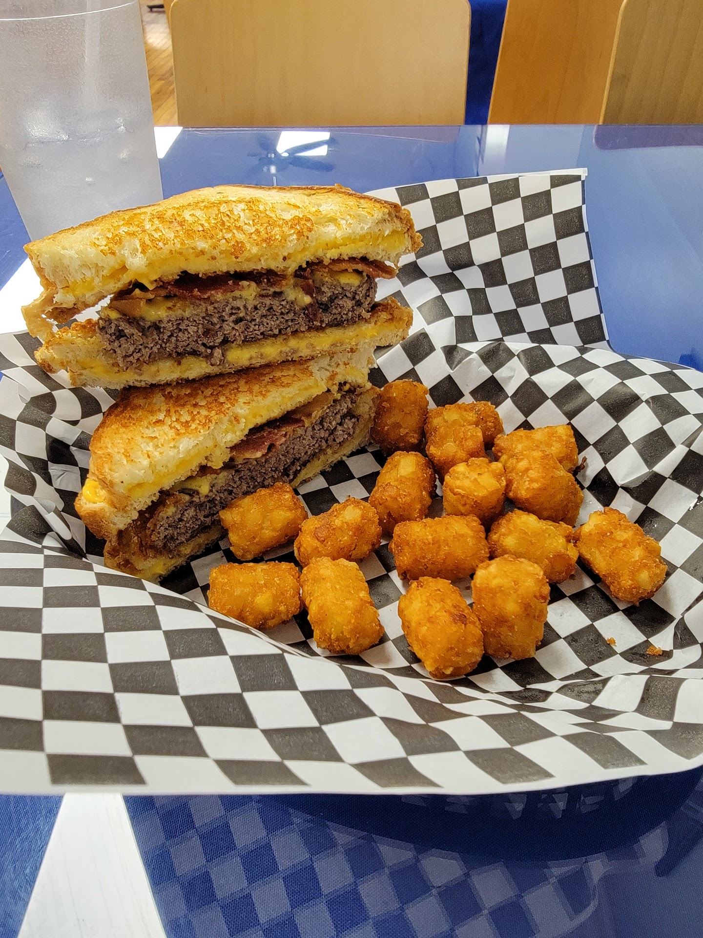 When our food arrived is when the surprises began. Everyone enjoyed their food and sampling from each others' plates. The grilled cheese with bacon sandwiches had the hot cheese strings when pulled apart from the other half. The mushroom burger smelled delicious and I was assured the taste was as tantalizing as the smell.