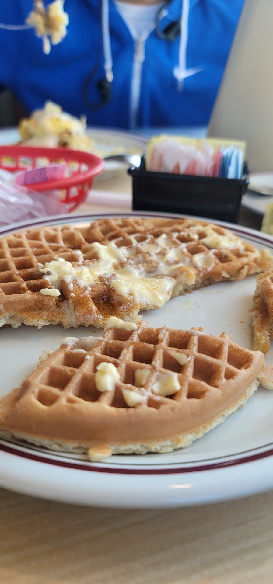 Read moreI understand for one why this is Huddle House and not Waffle House. The absolute worst waffle I have ever had. Soggy and somehow cold even though as soon as my order said completed I walked in and got it. Then to top it off the Fried Pickle Basket, which shows a photo of 11 sliced fried pickles and fries, only came with 5 fried pickles. When I called the restaurant the first person I spoke with seemed to care, but of course the cook claimed that's all that was supposed to be in there. If that's the case then I'm claiming false advertising on them for the amount of food their pictures claim in comparison to what their cooks are serving. So, an undercooked, cold, soggy waffle and a small fried pickle basket with cold soggy unsalted fries. That was my experience and I will never eat at Huddle House, in Dyersburg or anywhere else ever again. Especially since they didn't even try to make it right. And I will be sure to tell everyone I know, to choose another...