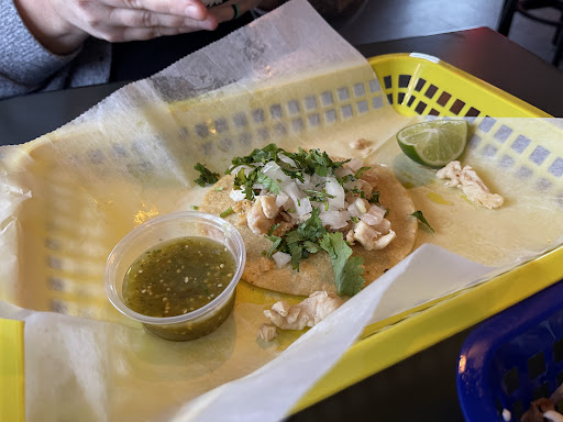 The chicken on the chicken taco was not appetizing. The chicken had the appearance of being boiled rather than grilled.