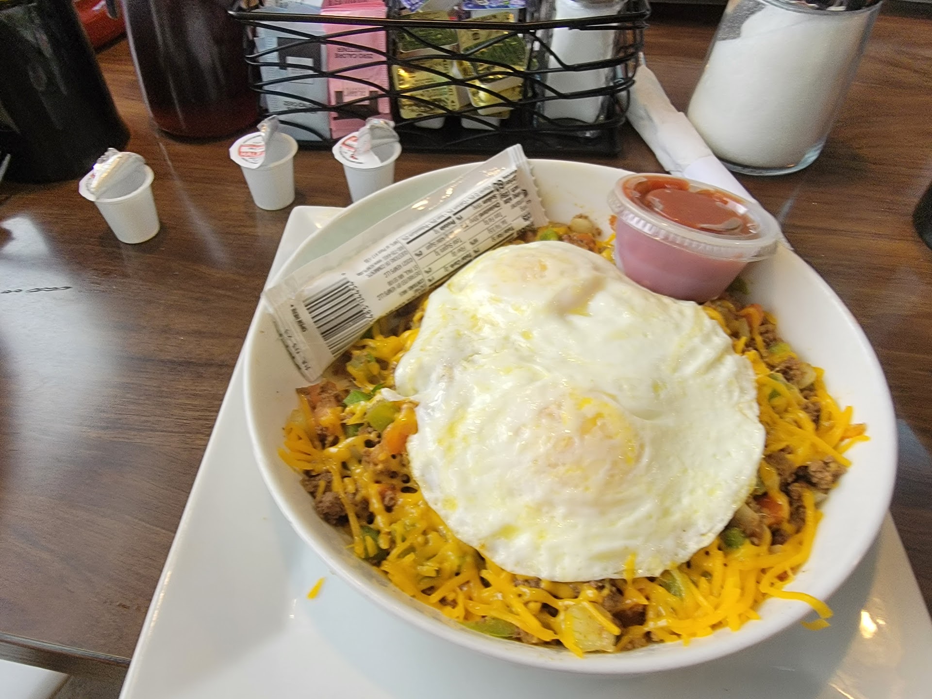 Read moreI had high hopes for this place. It is a super cute establishment. The atmosphere was really awesome! The way it wasn't bad and I could see myself and that was great. I ordered a Mexican skillet and my husband order corned beef and hash and eggs. I also ordered a half order of biscuits and gravy. That's where we started to have a problem. That Mexican skillet was anything but Mexican. It was ground beef and bell peppers and onions all tossed into a pan. No seasoning. The eggs that I ordered were supposed to be over easy. They ended up being over medium to almost over hard. When I got to the biscuits and gravy it taste it like raw flour. I will not be back! The food was presented well the service was okay, but that freaking food was...