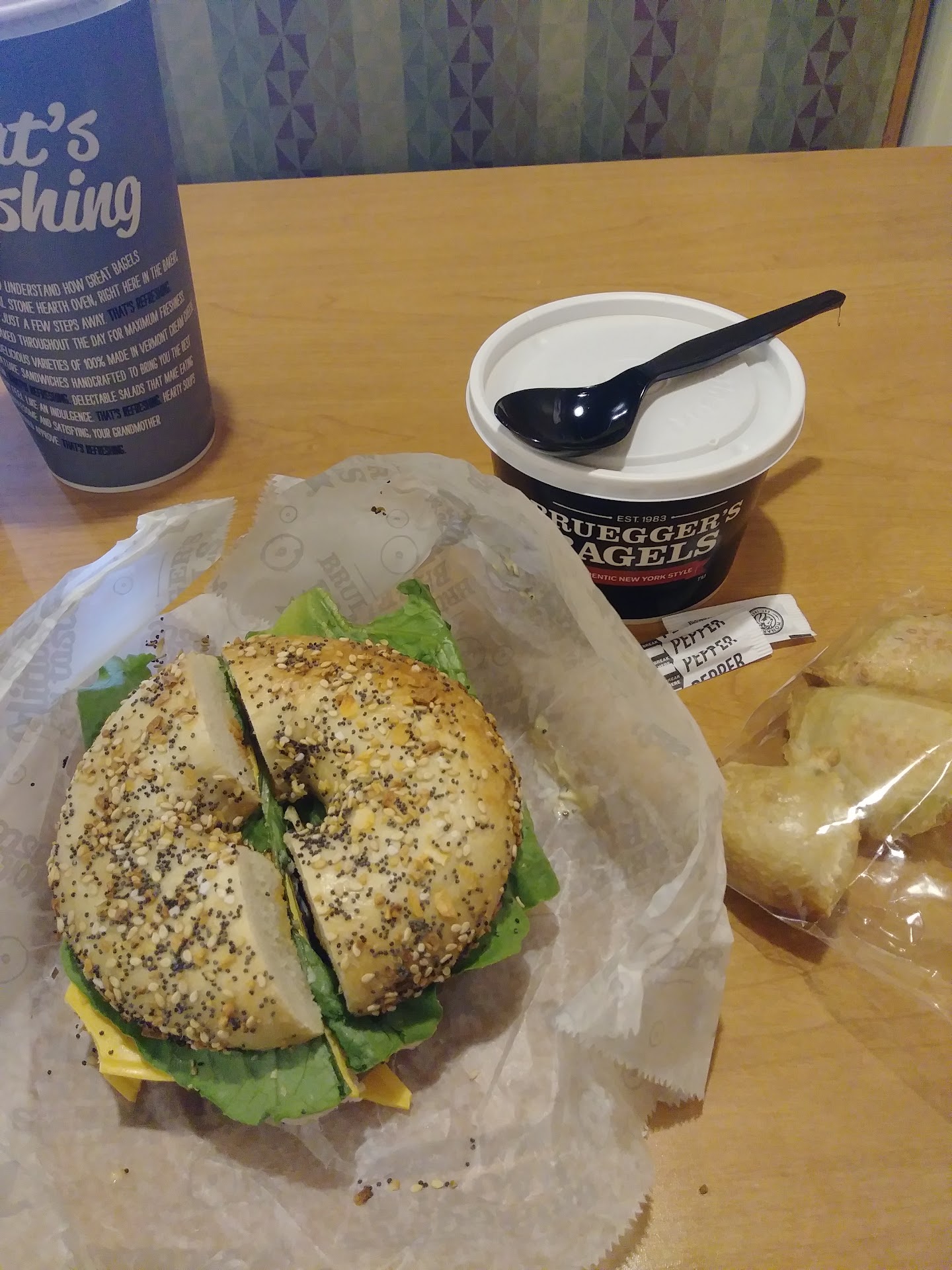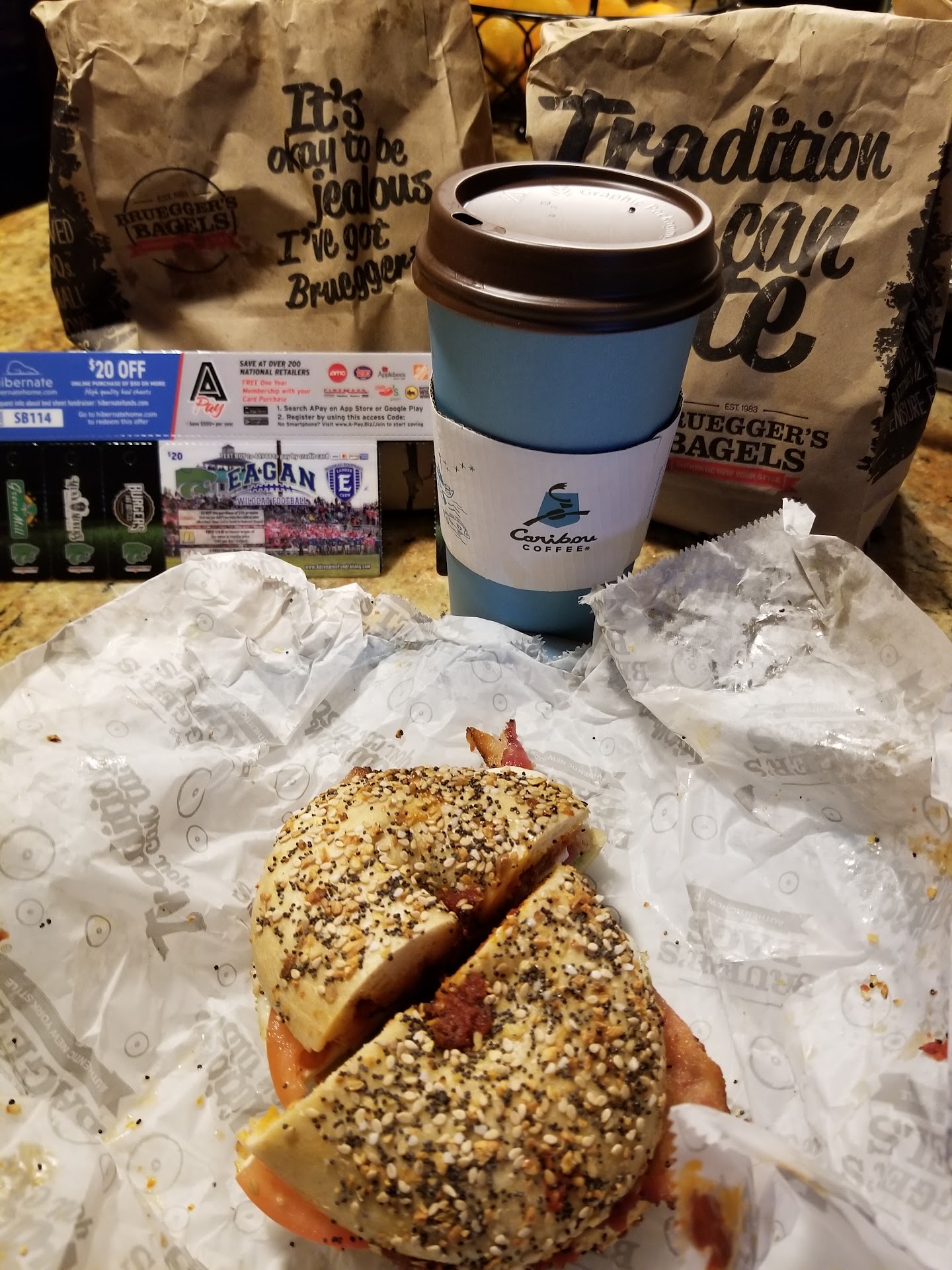 Read moreI had not been in a BB for years and their bagel breakfast sandwiches were good, from what I remembered; However this visit was overcrowded, and busy. I had asked for my egg, sausage and cheese bagel extra toasted, and even the lady making my sandwich mentioned that she would toast it before and after, which she failed to do and it was about getting it done fast. No effort to make sure the customers instructions were followed and no attempt to correct mistake.