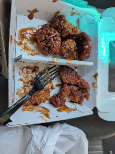 The food was subpar to have such a hassle to get the order done right. Dry chicken and sauce just blobbed into the container....when did they stop tossing the wings in the sauce so they are...