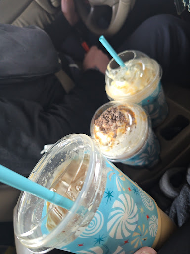 In the nicest possible way, the employees at this location always seem confused and stressed out. Coffee is fine, I like the caramel espresso shakers. Took me a minute to find something I like because most things I have ordered are diluted with milk and lack rich espresso flavor. I’m not positive, but I also think that they add ice to their drinks lastly, AFTER liquid is poured. Some drinks I’ve gotten have only had a few ice cubes and the drink is still luke warm. To prevent this, ice always goes in the cup first followed by espresso! I’ve been in the restaurant industry for 6 years and I’ve never written a review for a place unless it’s a positive one because I understand and feel for people in customer service being one myself, but this location of caribou has left me a tad more disappointed than satisfied. Today I ordered a sandwich. The lady at the register took my name for the order. The person who ordered after me had gotten the same sandwich. Once the first sandwich was ready (mine) they called out the name of the sandwich, not the name the order was under. Me being the only one with that order aside from the lady behind me that had also ordered the same, I grabbed the first sandwich. After a couple minutes, the lady behind me who had ordered the same sandwich asked if they had HER sandwich on the way. One of the employees responded with “I put it on the counter. Where is it??” She replied explaining how I had ordered one as well and took the first one (because I ordered first) and she was waiting for hers. This could have been avoided with communication and calling the names of the orders hence them initially asking for them! There was enough staff and no big morning rush of customers. I’m not angry with at all with Caribou, nor am I a Karen but I just feel like there are things numerous they could improve on for their sake for things to run smoother. Drink tasted very good today though.