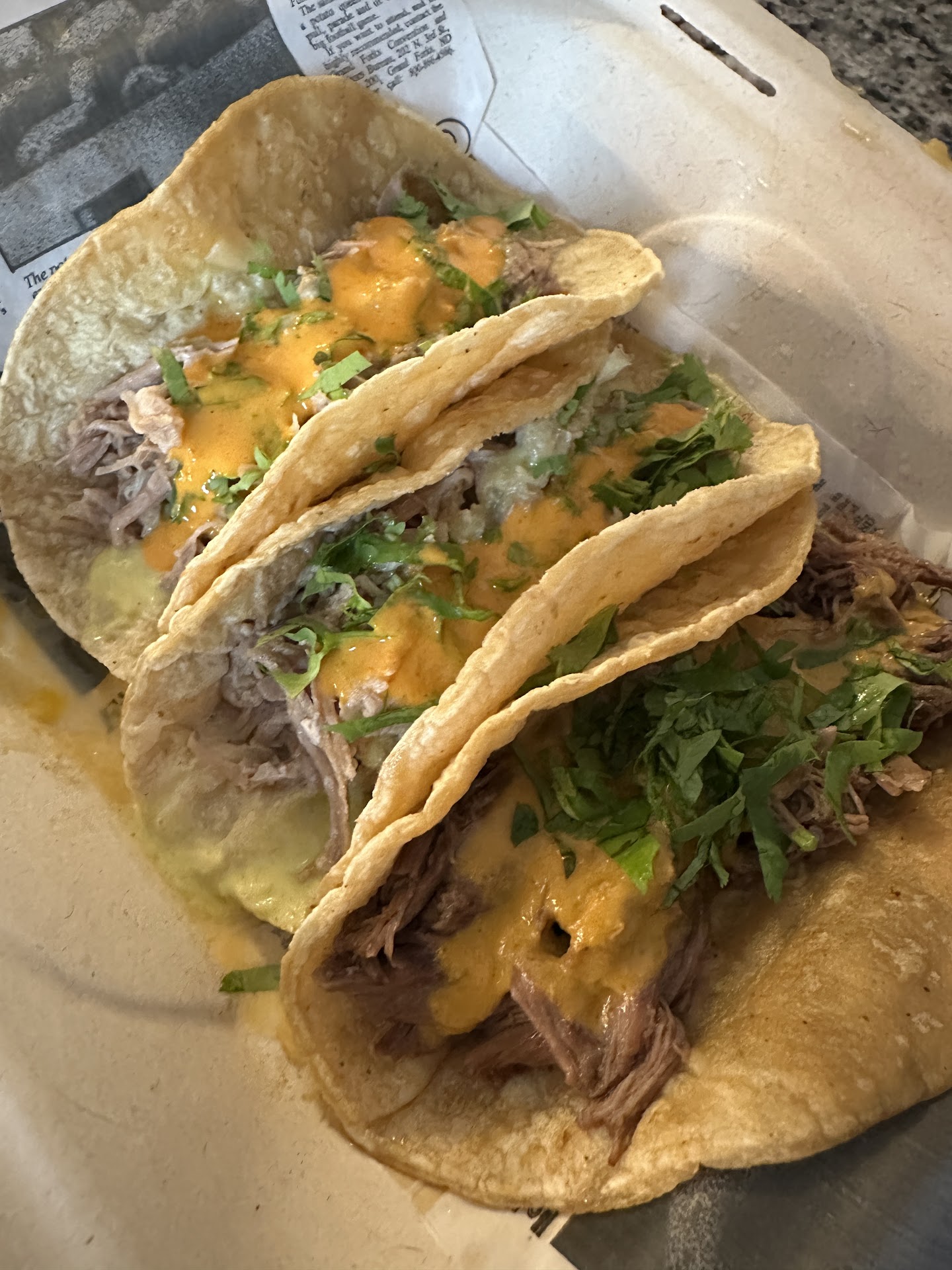I went straight for the carnitas, and I might never look back. Juicy, flavorful, and fall-apart tender, they pack a serious punch. There’s a richness to the pork that tells you it’s been slow-cooked with care, not rushed out of a steam tray. And while the tortillas do their job, the carnitas bring so much juice that I strongly recommend eating them on-site. Don’t risk the drive — this taco is best enjoyed hot and fresh, with napkins nearby.