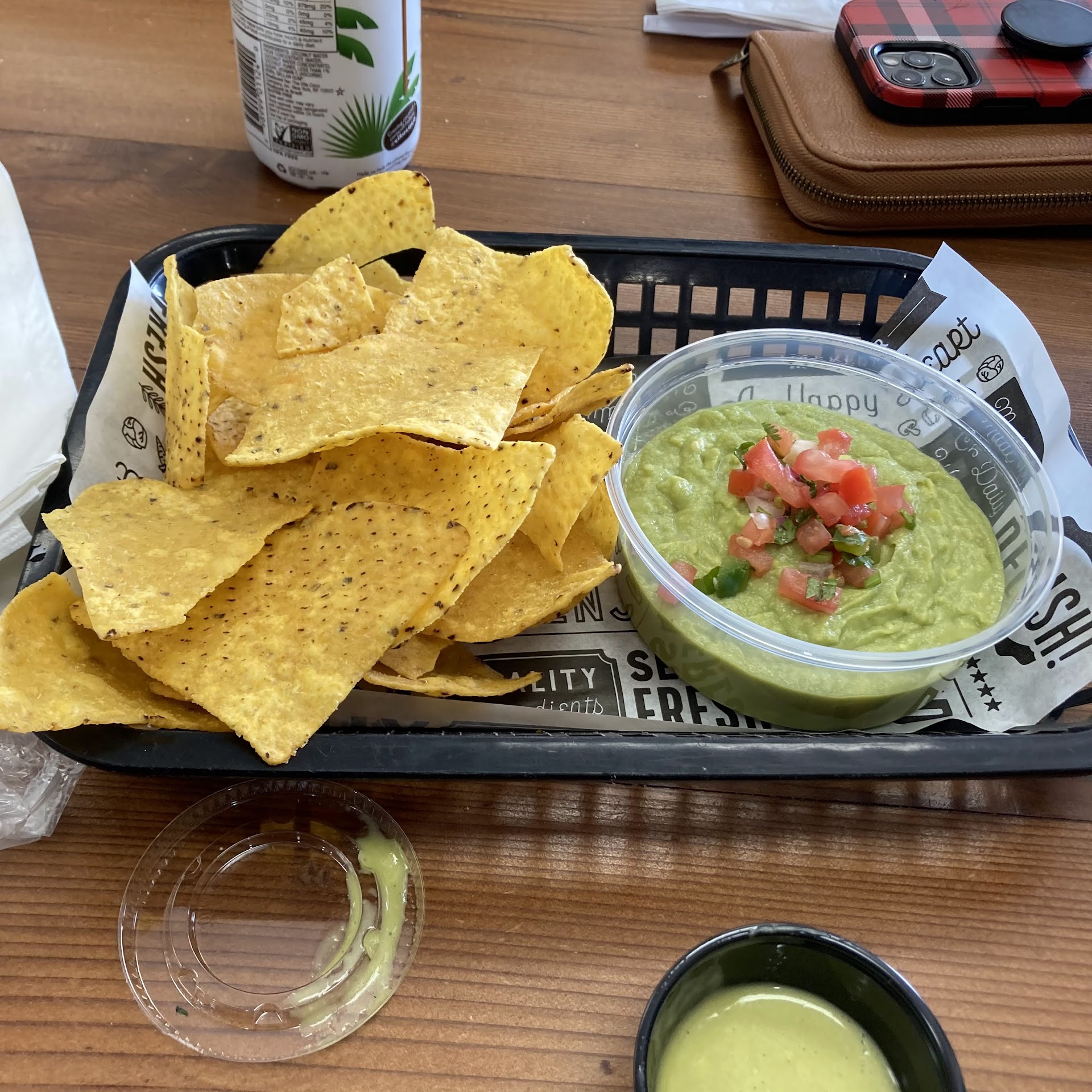 What we ordered: chips and hot salsa, quesabirria, and an asada burrito.