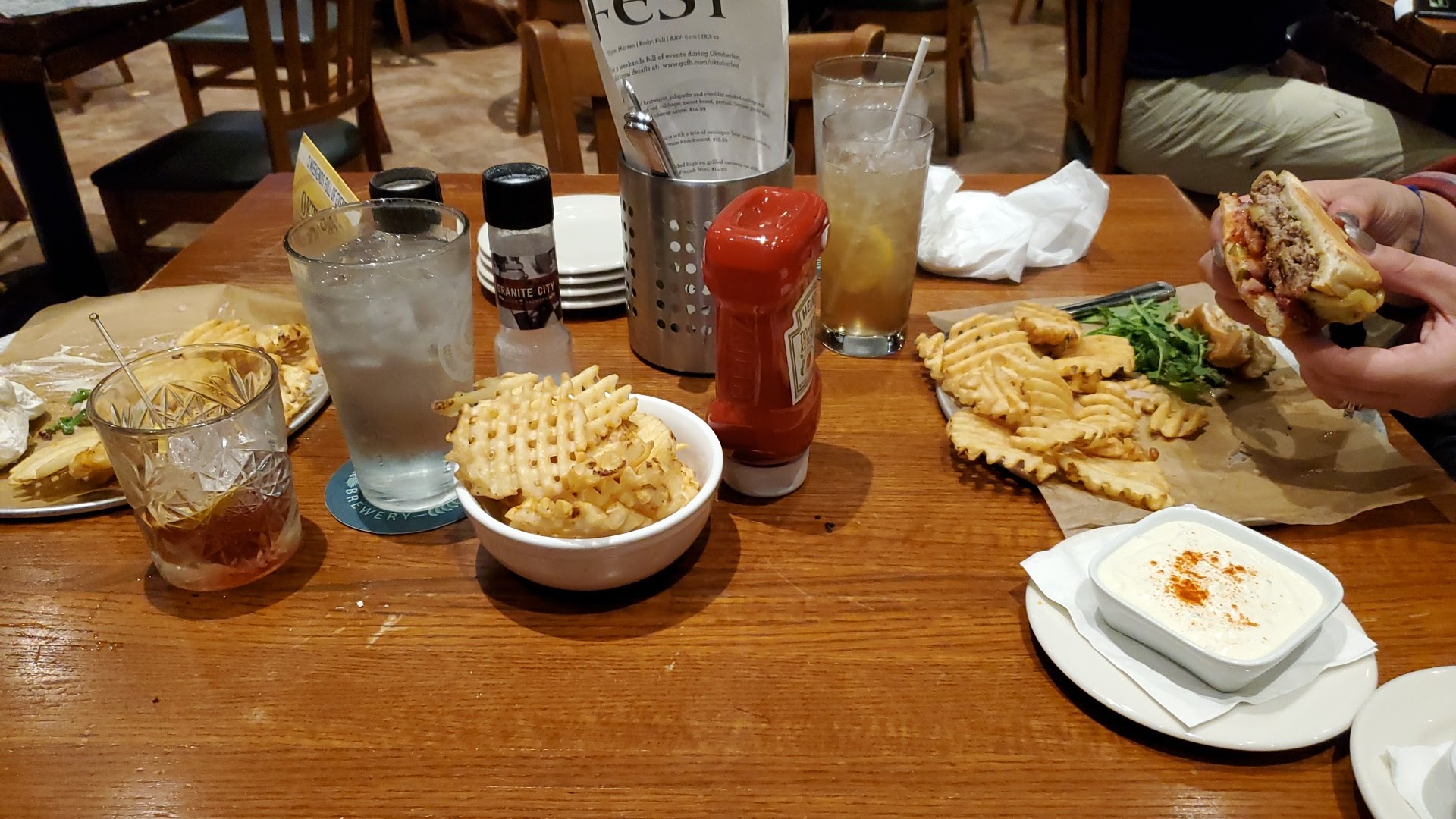 Read moreIf I could give less than a star I would. This was an absolute disappointment. We arrived and there was hardly clientele. The man at the door promptly seated us, 5 adults with 2 babies. It was 15 minutes before we were asked about beverages. Another 15 before we were asked what we would like to order. 2 soups and an appetizer were put in. Along with the rest of the entrees, 2 burgers, 2 salads, and chicken Alfredo. It was 45 minutes before the 2 soups and app came out. By then, beverages around the table were nearly deplenished yet no refills were offered or gotten. We are now an hour and 15 minutes into our visit, we've had a single beverage per person 1 app and 2 soups delivered to the table. The bartender notices multiple empty glasses on the table and comes over and gets us refills. Another near 30 minutes pass, we ask the waiter where the food is. Suddenly it comes out in the next 5-10. Neither burger is terribly warm to where the cheese isn't even hardly melted, it's just softened and the meat of it was bland. The alfredo has only the faint taste of the char from the chicken in it. Salads were fine. We ask for boxes and the bill, without more than a couple bites of each dish everything is taken to go. The babies want to spend no longer here more than the 2 hours they have already spent in the restaurant. The bills are brought, it is asked what took so long since there were multiple people who arrived after our table and received their orders prior to ours. The waiter says it must have been the handheld POS system and he will have to let his IT people know. One of our group tried to pay her bill with cash and asked for change, instead of bringing the change that would have been left after the bill. The waiter breaks the bill and returns the same amount of cash to the person. There were no apologies for the time wasted waiting. No discounts offered off the bills. Just a look of disgust given when there was no tip noticed. Only once were we visited beside from ordering and asked how things tasted, right after the apps were delivered. Every other interaction, though still very few, we had to get the attention of the staff member...