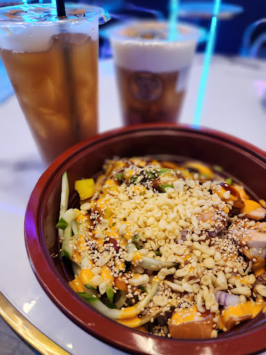 The lights caught my eye as I was walking past. I am very happy that I decided to stop for dinner after shopping. It was 5pm, and I was the only one in the store. Usually, when there is a lack of customers, I fear and have experienced bad/old food served. However, I was proved wrong with my order. The lady was very nice and generous. I feel that for the price of the poke + lemon tea combo, I had a great serving size. The food was fresh, and she was generous with the sauce, tempura crunch, and sesame seeds in my poke. I've been to places where I only get served 5 tiny pieces of salmon, but I feel this place gave me the right amount for each bite. I don't like my drink overly sweet and often choose 25% sweetness. I also like to taste the tea in my drink. I was very satisfied with the lemon tea and the fresh tea with mousse I got. She said that the lemon tea is normally sweet, and it wasn't confirmed, but I speculated she made my lemon tea less sweet when she saw my 25% preference. I really appreciated that. I can't speak for the quality of the pearls since I opted without them today.