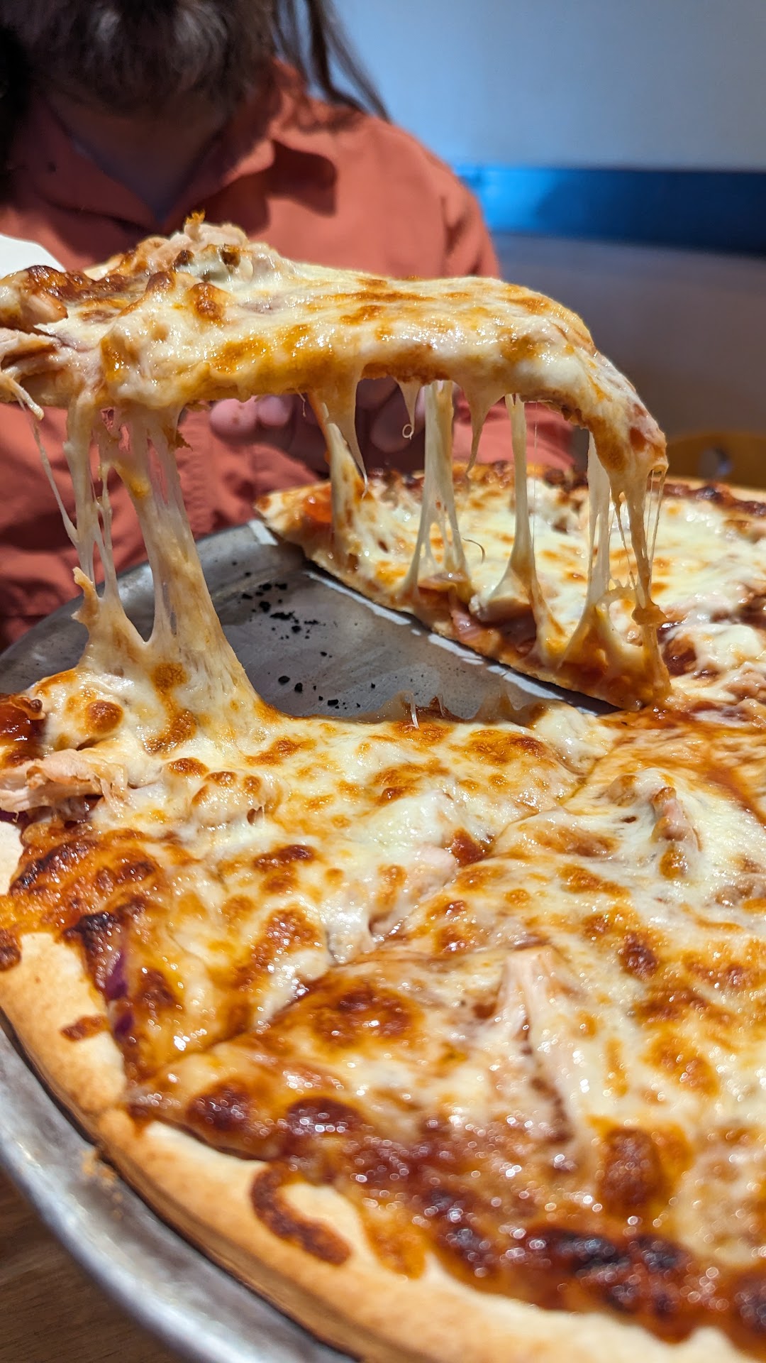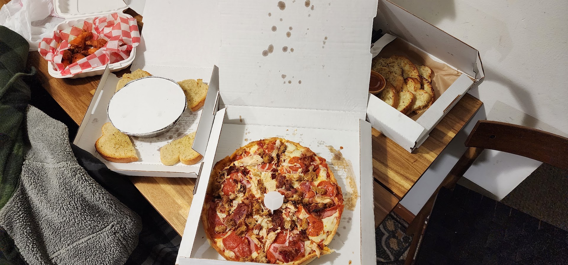 Read moreThis is a great place if you like bone-in wings with ranch! Ordered online and upon pickup, I checked my wings box to find Buffalo chicken tenders instead of bone-in wings in 2 flavors. After a brief moment of uncertainty, I showed the server my receipt and she offered to remake the wings. 15 mins later she told me they again messed up, but was upfront that I could keep the “messed up” chicken they made in error, and she gave me a gift card to make up for service. I walked out with a mostly cold pizza and 3 things of chicken. I offered the giftcard to the homeless man camping on their corner, he didn’t want it. Pros: Ranch dressing is the best ever. Wings are amazing. At least 1 employee takes ownership for human error and has great customer service skills. Family friendly- kids were welcome there and enjoy it. Cons: May make simple errors on orders even on a slow night. Pizza may not be cut thru all the way, toppings fall off if you don’t do a second cut. To-go food may not sit under the warmer if waiting on it for pickup.
