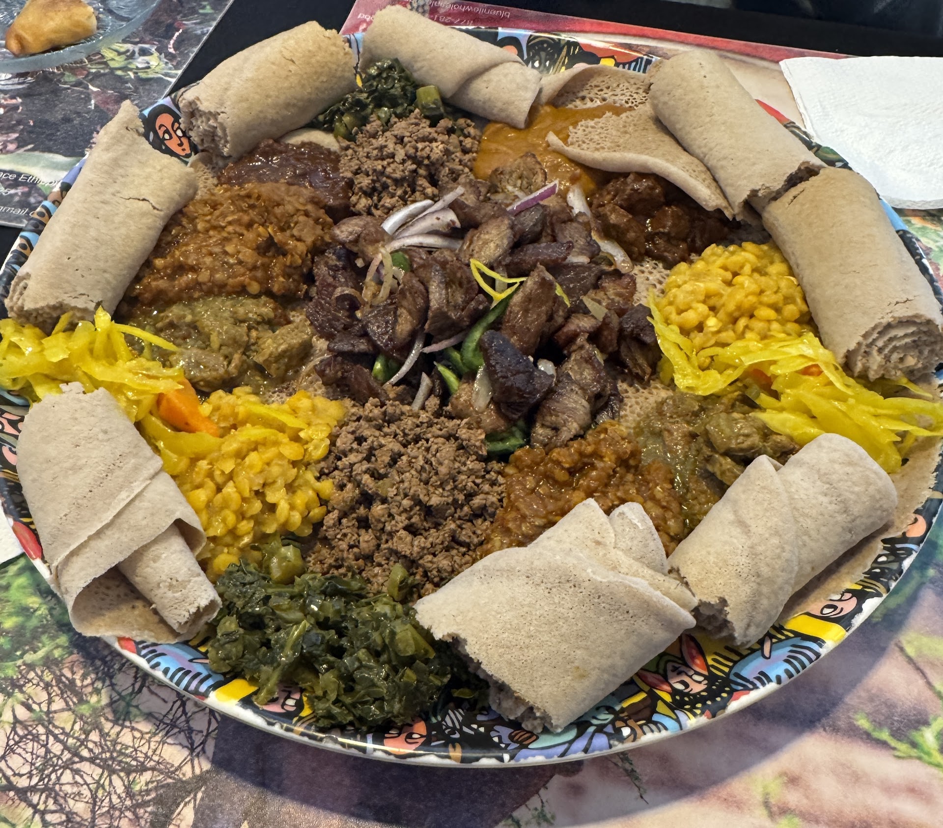 I really wanted to like Sodere. I am proud to see a locally owned & operated restaurant by an Ethiopian family in Eagan. It took awhile for someone to bring us menus but once we ordered, the food arrived in a reasonable amount of time. All of the food was freshly made & was delicious in very small amounts. The seasonings in the food were too hot for my tastes. We ordered the vegetarian combo which was listed as $13.99 on the menu.