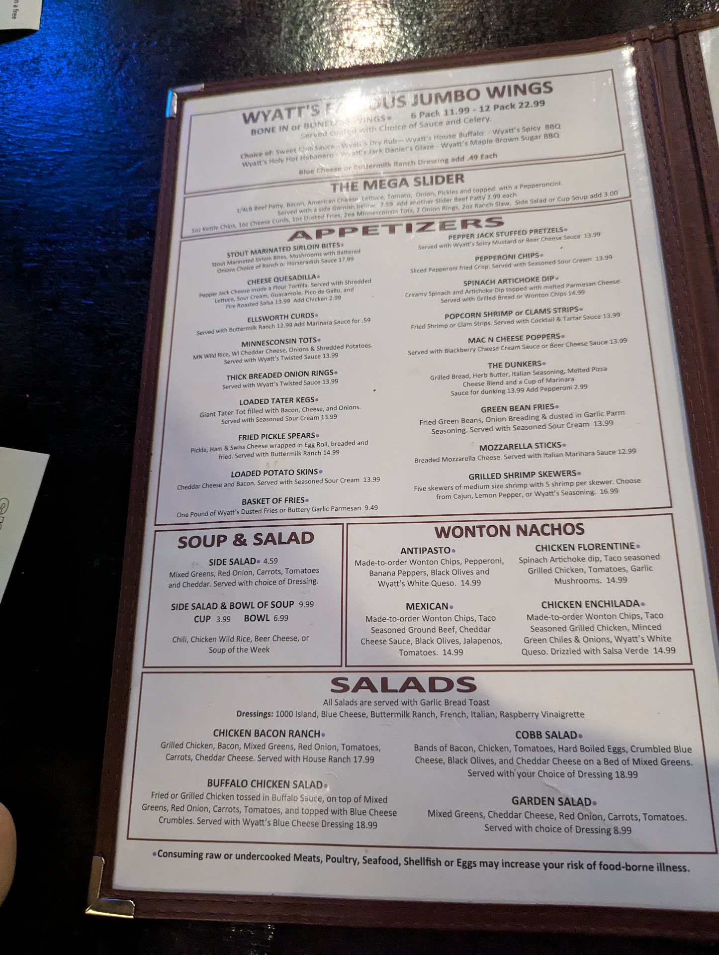 We use to frequently go to Wyatts in Hastings before they closed. We spoke with the owner often and knew how much pride he had in his food. Unfortunately the Eagan location does not meet his standards when he is not there. We went on Friday 3/1/19 approximately 9:30pm. There are approx 8 patrons in the place, not busy but it was bad weather outside. The bartender was tending tables. He came over and gave us menus and left. When he returned her asked if we would like a drink. I asked if he could make an orangetini and he said we don't make those kind of drinks here. We have a full bar but no specialty liqueurs. I said okay what about a cosmopolitan. He said okay. He wanted to walk away but I quickly stopped him and said we would like to order. We didn't want to have to wait longer to give our order. It was very clear that he did not want to wait on us. We ordered the onion rings and the fish dinners. I then received my cosmopolitan. It was the worse drink I have ever had. I couldn't even sip it. Too much lime juice and I think it was missing triple sec. We he brought out the onion rings, he just set them done and turned around and I had to get his attention to tell him that my drink was not good. He could of cared less. Grabbed it and started to leave and I asked if he used lime juice and that I didn't think you are supposed to use lime juice. He snapped back and said that it does and he used fresh. He never asked me if I wanted it remade or something else and went back to the bar. I just knew that it didn't taste good. He finally returned with a glass of water. I was just going to order another drink that he could make. Oh well. I just knew at this point it was not going to be a good experience. The onion rings were not rings. They were like shoestring onion rings fried together to form a clump. Some of the dough in the middle was raw. At this point we didn't even want to see what the fish was going to be like. Well, I would suggest never eating their fish. Absolutely terrible!! We received 2 large pieces that barely had any fish in the middle. One of my husband's piece of fish didn't have any fish in it. 6" of dough fried. Also the dough had absolutely no flavor, Just grease taste. French fries were cold and not cooked thoroughly. Coleslaw was room temperature warm which should be cold. Left that alone..afraid of potential health hazard. The bartender then comes back and I was afraid to complain but it was awful!! He apologized and said they hadn't made fish yet tonight. I then asked if he could get order with less batter and not overdone. Well when that came out the color looked better but now we knew why we couldn't find the fish in our first order because the fish was only 1/4 inch thick which looked like 2 thin strips. Very disappointed!! Well at least we didn't have to pay for 1 meal...
