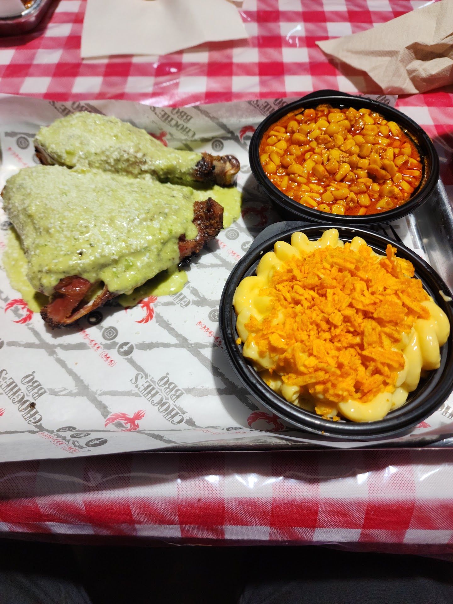 FOOD, taste great, and the Chicken was very tender, and everybite was an excellent smoked and well cooked BBQ. The Mac & cheese was ok, flavor needs to be More like bacon or Real shredded Cheese instead of Cheese Chips sprinkled. The Streat corn was flavorful, hot, and every bit was great. The Quarter Chicken was delicious with the sauce, giving it more added flavor. I was impressed with the presentation of this Tray Dish. SERVICE: was good, the cashier was polite and respectful, and she stayed smiling. And the head pitBoss was nice and gave me a sample sauce to try out. Keep up the great work. ATMOSPHERE: Clean very large plenty of room To sit comfortably, the "Wagon Wheel" has nothing on this establishment. Keep this in mind, I'm from out of town 4 hrs away. All honesty as a Google Food Review Guide. And it's like night and day. I will come back many more times to try...