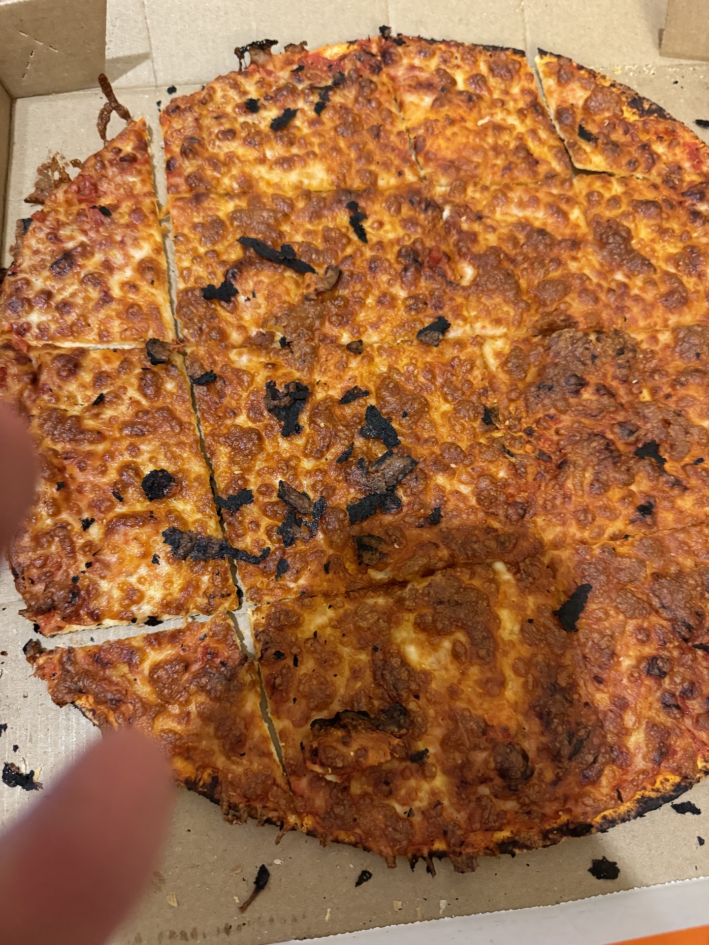 And then after I got back to my hotel, I saw they didn’t even cut the pizza so I had to tear the thing...