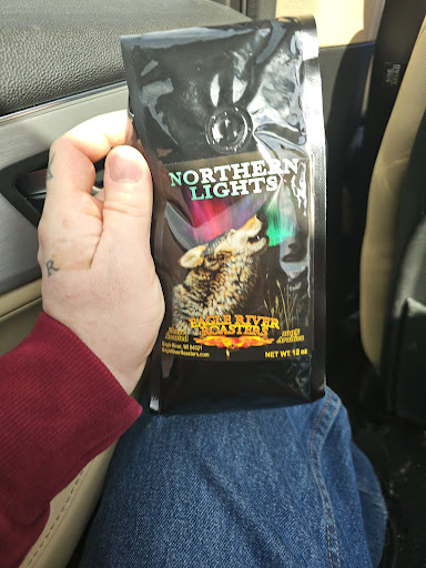 I stopped in with my husband, mom and daughter the other day before we popped over to a shop across the road. We have been driving through Eagle River to our destination of Land OâLakes for years, and this year Eagle River Roasters caught our eyes on our way through. I ordered a cafĂŠ au lait, and we also had a hot caramel crème (latte I think?) and an iced Nutty Squirrel Mocha. I didnât try the mocha but my husband said it was excellent. The cafe au lait and caramel crème were both great with the caramel crème having a really silky texture that was really satisfying. The atmosphere was very welcoming and we stayed for a bit to relax before heading out. If anyone is looking for a place to set awhile there is a lovely outdoor seating area or if youâre indoors, thereâs some adult coloring books and other options. Overall really enjoyed the place and looking forward to visiting again next time we...