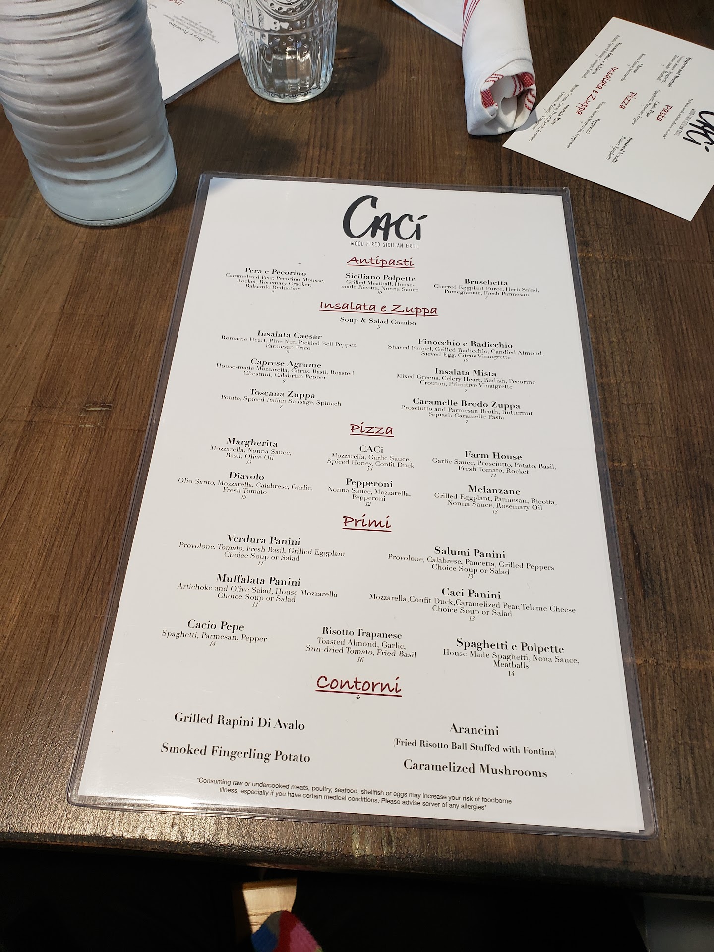 Caci is super local to us and was on its way to a neighborhood favorite, and at some point we may be back, but we sure won't be recommending to our friends or taking out-of-town guests there as we had planned after our last visit. And that's a bummer...