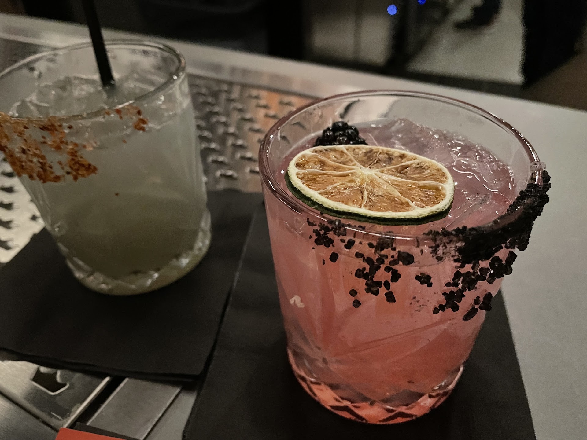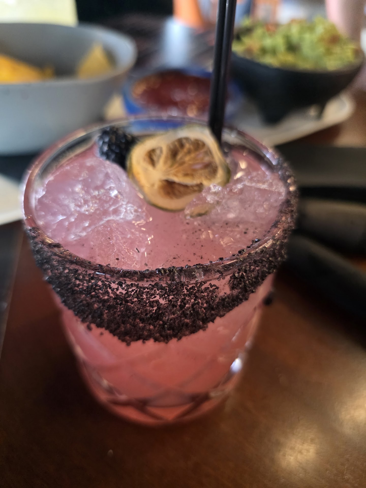 My Huckleberry mocktail was delicious! It was sweet and tart. It was garnished with a juicy huckleberry and a dried lime piece. The chips and dip were fabulous! I enjoyed the fresh quac and queso. It was hard to stop eating the tajin dusted chips. And then you add queso to that chip...... so good! The tacos came out a little after and boy did they look fantastic! The quesabirria taco was devine! It's prepared a little differently compared to other birria tacos. They melt the cheese into the meat and not grill the taco itself. It worked! That baby was filled with the meaty cheesy goodness. Topped with a delicious salsa and onion mix. The consume that came with it was savory. It added a good element to the quesabirria. The shrimp taco was awesome! The shrimp was savory and crunchy. The cabbage slaw on top gave it a nice crunchy element. The sauce gave it a creaminess to the bite. Both of these tacos were chef's kiss!