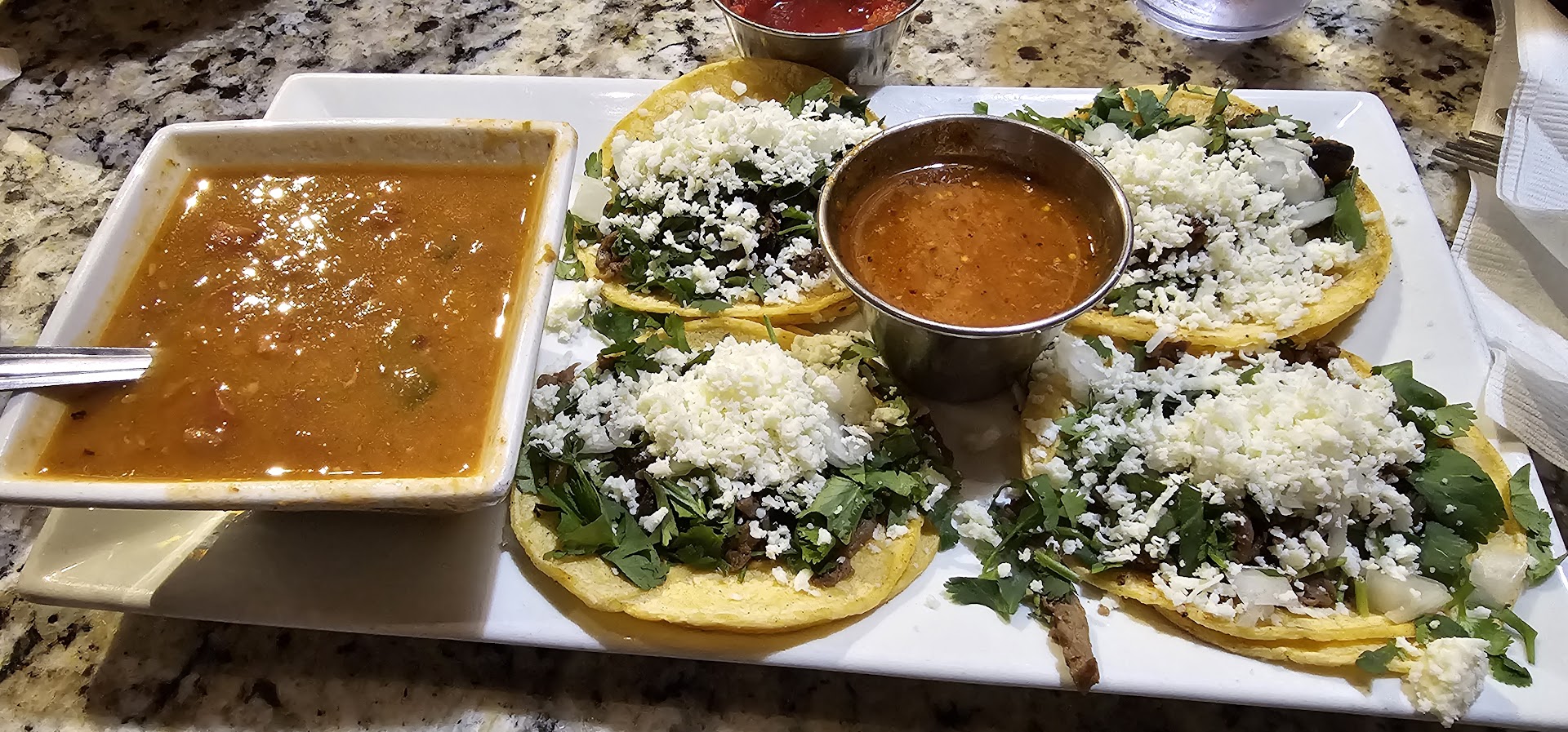 Read moreSadly, my review has been downgraded to barely 2 stars, because of my meal last night, which I picked up as a to go order after church. More stars for the young lady who waited on me, because she was very helpful. I ordered three tacos with avocado, a side of charro beans and a grilled hot pepper. Typically a favorite meal. This time, there was hardly any avocado on the tacos despite there being nothing else, the cilantro and onion are presented on the side, and the cilantro this time was definitely not fresh, basically wilted. Two of the soft corn tortillas were barely cooked, definitely could not eat. The Charro beans container was half broth, and the container is so small that means I barely got a third of a cup of beans in actuality. The saddest meal I've gotten there since they opened up. For $15, I think there definitely could have been more avocado, more content in general overall. Not sure I will be back. This location has become very popular, and sometimes when the restaurants get popular they back off on quality and content because they already have people's...