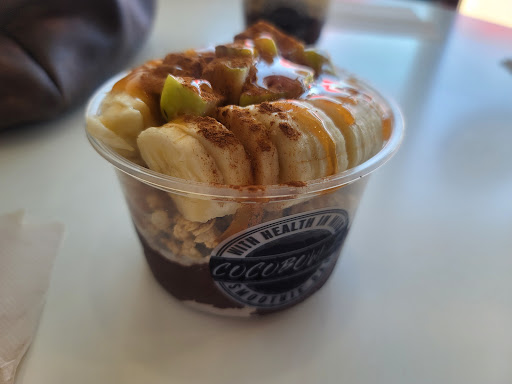 My niece treated me to a āhealthy snackā at CocoBowlz Easley. CocoBowlz is located in next to Poke Bros. Itās airy, nicely decorated and quiet. It was my first visit, so I had no idea what to order. I didnāt want anything with coconut. They also have smoothies and you can build your own bowl. The Dual Craze bowl with cacao base sounded good. Itās granola topped with sliced bananas, blueberries, cacao nibs, shaved almonds nutella & peanut butter drizzle. The presentation of the bowl was pretty, and I enjoyed the top of the bowl until I got to the bottom. The cacao base was not that good to me and was a little bitter. This bowl was $12 and was a nice size bowl. I would try it again, but not the...