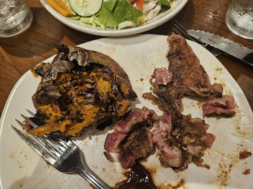 Read moreI'm always the quiet, conservative one in the group. All I asked for was a steak cooked to "medium". I received a "rare" almost raw steak. Our server acted like he was surprised that I stated to him my steak was cooked wrong & acted inconvenienced by this. He even questioned me like I should just eat a very rare steak when I ordered a medium one. He did take it back to the kitchen to cook it to medium. Finally, after everyone else was done eating in our party, I received a very dark "well done" dry (burnt) steak. Our server stated with a smirk, "So, how's your steak?" When he could clearly see it definitely was "extra well done" (burnt). He then acted offended with my response. He then stated loudly, "WELL, I DIDN'T COOK IT! He then said he could go get the person who did cook the steak! He didn't offer to get the manager. I then explained, "First, I got a bloody steak, then a burnt steak. All I ordered was a medium cooked steak. I'm not eating this burnt one & you can take it off my bill." He appeared somewhat offended by this. But he did take the plate back. He never offered to get the manager to assist in the situation. She finally did come out of the back, as we were leaving & meekly asked if I wanted to tell her now about my problem with my steak. I just shook my head. She didn't even respond, not even a quick apology for my steak being cooked incorrectly. She just walked off. We then paid our bill & left. My best advice is to GO DOWN THE STREET TO LONGHORN'S STEAKS! BETTER STAFF, BETTER STEAKS!...