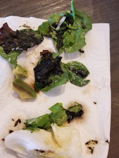 She did not say anything about the coleslaw, and just shrink her shoulders at the rotten salad greens.