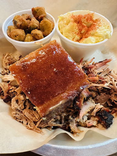 Read moreStopped into The Smokin’ Pig for the first time while visiting Easley with my family. Parking and access were easy. We ordered at the desk/counter as soon as we walked in, and seated ourselves immediately. Place is quiet but bustling. Dining room was naturally lit and comfortable. Friendly helpful waitress came by to deliver the drinks we ordered at the counter, and to drop off setups and a neat little snack of delicious fresh pork rinds.