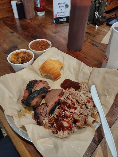 Read moreI Really love this place. Their warm vintage/barn ambiance, is right up my alley & the simple food, done really REALLY well is something I can definitely appreciate! It's one of our few top pick restaurants. Where we always take family & friends during their visits because, it's reliable, has great food at reasonable prices, & the staff is nice. The 1st time I was there, it was a little different because, you pay 1st, then sit & are served. I wasn't expecting that, but I can see why they do it that way. It really keeps things moving & this place is usually packed! After you order and are seated, there's barely a wait till you get your food. I've tried everything on the menu, even all of their sides & seasonal cobblers (apple, & blackberry are my favorites btw). Even though there are items I prefer over others, I would still be happy eating anything off of their menu! The only "negative" experience I've Ever had, was when I encountered a rude cashier.. That's it! No one's perfect 100% of the time! AND, It only happened that once! Anyone else I've ever had wait on me, was so nice and helpful. The lady who works with the catering is simply amazing! I'd be here for another hour telling you about how sweet and helpful she is. The reason I give it 5 stars is because, I can't give it 4.8 & the only complaint is.. I wish they were opened a little bit longer, and for a few more days. But then again... I know that BBQ'n takes A LOT of long hours and work to...