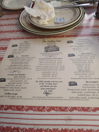 Read moreThe Trolley Stop use to have good food, quick service, friendly staff, and a clean environment. Something has changed. It took over a half an hour to get our breakfast. My pancake was like rubber, I had a hard time cutting through it. The waitress was unpleasant. She asked how will I be tipping by cash or card and asked how much will I be tipping. It was weird and rude. There were also a lot of house flies around. They were landing on us and our food. It was annoying and gross. This will be our last meal at the...
