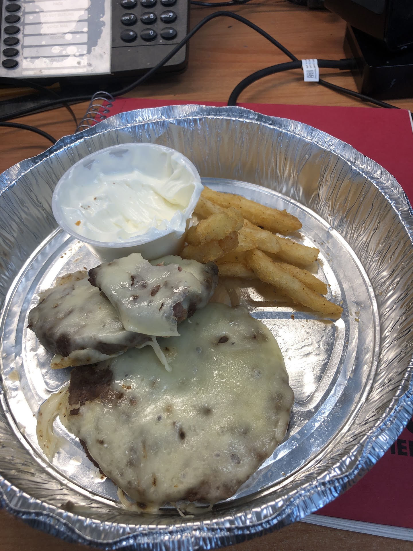 Read moreOrdered California cheeseburger ( Swiss) no bun with side of sour cream for the fries. Below pic is what I got but with no fries. A coworker felt bad and gave me some of hers. No clue how no bun means also no lettuce tomato onion or why I got a second burger. Ps the burger is disgusting.. it’s like taking a bite out of a leather purse. I will not waste $10.50 or even $.50 at this place ever again. Maybe the bagels are good but avoid the burgers and asking for anything custom. ...