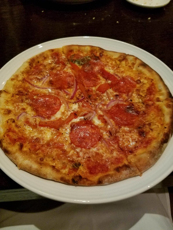 Read moreOur waiter was pretty bad and inattentive. Had to ask for lemons for ice tea twice. He put the salad plate in front of me ,but just before he set it down took it back , knew he made a mistake. It wasn't crowded but they were in the process of breaking down, so we had the pleasure of listening to the post and pans slamming and banging as well as the carpet sweeper going on around us. Even if a place tells you they are open I think maybe it's not good to go in the last hour. My husband's pizza was disgusting, there was a big hole in it then they pushed the cheese over it to disguise it. The bottom was totally soggy and wet. ( the brick pizza oven was already closed down.) They have sausage on the menu but tonite it was not a pizza topping option?? My husband will usually eat whatever is put in front of him even if it's not the best. He hates to send anything back. The pizza went back so fast I couldn't even take a photo. The mushrooms were mostly pesto tasting herbs not sausage and 3 cheese. My Tuscany lemonade had some kind of strange floating particles in it, that was NOT lemon pulp, and there was zero taste of basil. And I needed to order something else fast because it was last call. Scallops were mushy. They no longer have my favorite fusilli so I got overcooked, undersauced angel hair. And the caprese tomato salad was a huge plate of cut up cherry tomatoes with a ball of burrata on top. Had to ask for bread, and grated cheese. And then wait forever for him to come. The calamari and shrimp were fried very nicely, and they included a nice amount of the tentacles, not just rings. ( the only good part of this abysmal meal) The lemon butter pepper sauce was ok, would have been better if it had been hotter...... should have stuck with marinara. The the last straw was the $5.00 overcharge on the check for a salad we didn't order. Just another act of inattentiveness overall. Luckily, I always look at the final check. It unfortunate, because we loved Carrabba's and we don't have one local to us anymore. Maybe they should shut this one down and reopen the one closer...