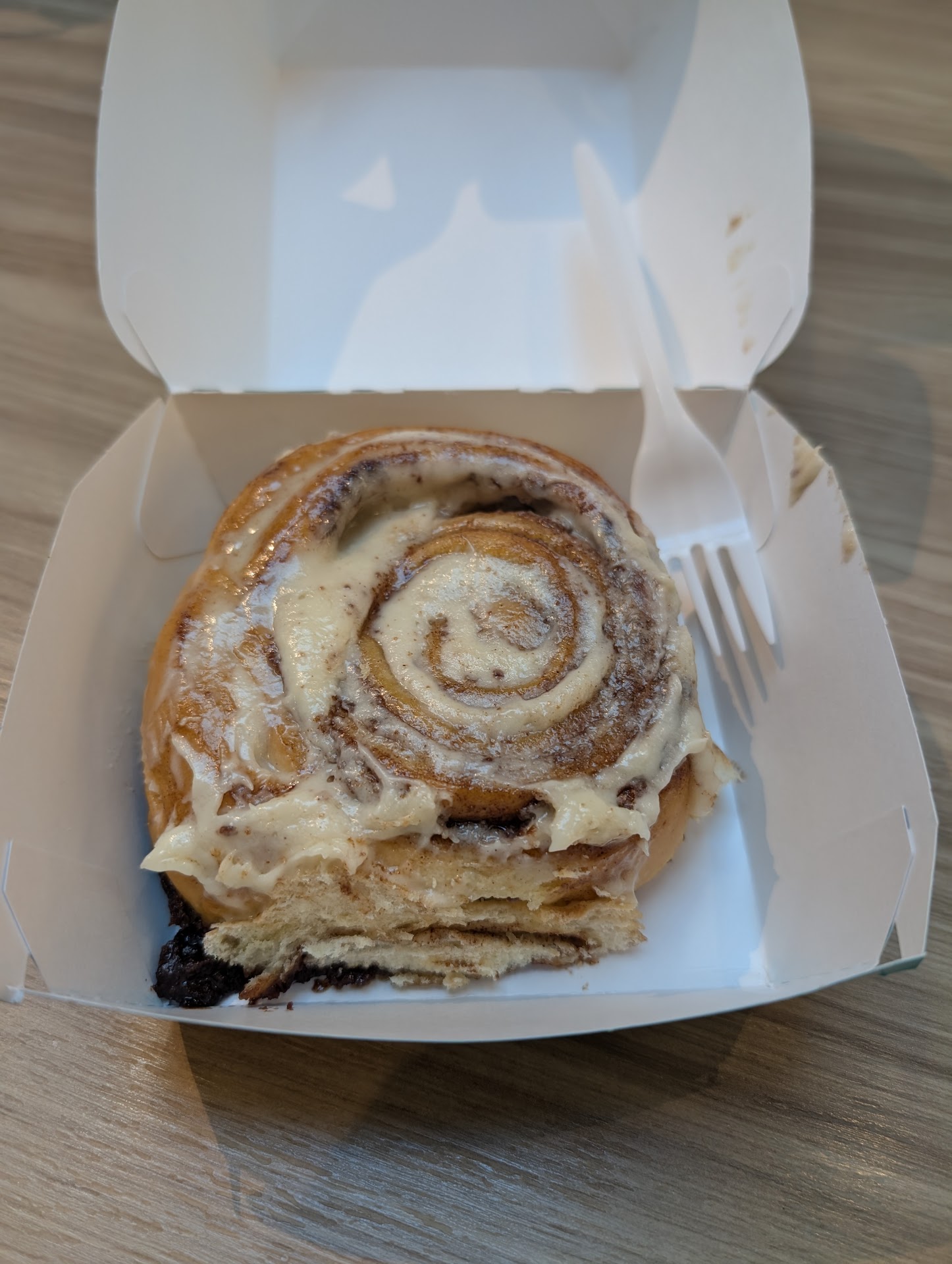 They will make the hot coffee fresh if you ask them to-which of course they should. If you're pre-diabetic maybe cinnamon rolls are not the best food to eat, but delicious. No, I do not indulge often. Not often at all because I'm currently far from wealthy. I'm far from rolling in the dough. No pun intended. The young woman with the glasses is kind, and I do not mean that in a weird way. Actually, one of the employees will not always make it fresh-communicating to me they made it 45 minutes ago & will not make it again. Yes, I contacted the owner about the profoundly rude behavior towards me on more than one occasion without getting...