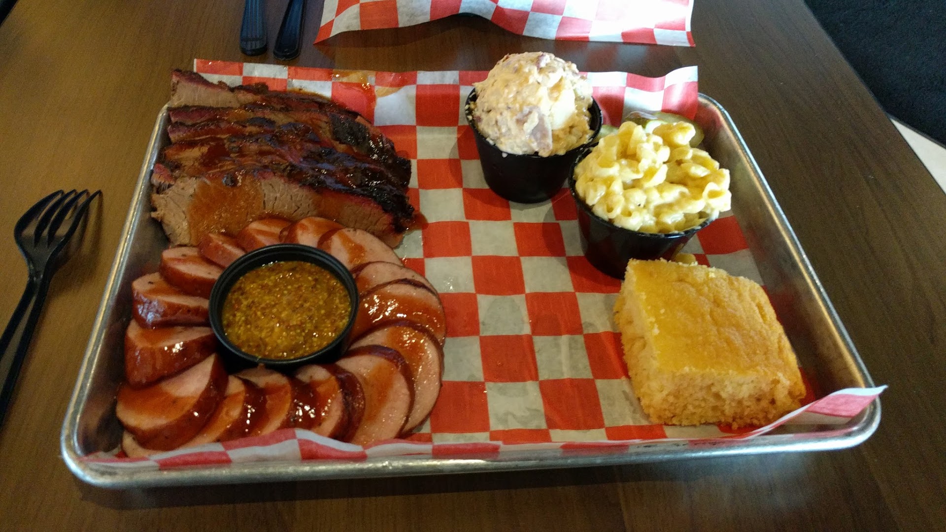 Really enjoy their smoked kielbasa which they procure from a local Polish deli. What's really great is the special Down Home Mustard sauce they made just for the kielbasa, it's really worth a try.