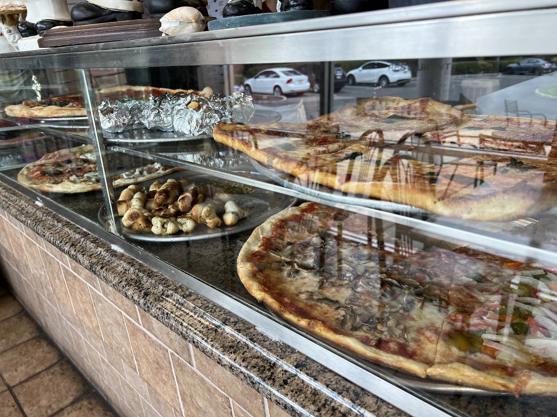 What surprised me was that it was actually a really good plain pie! The sauce in particular was great because it wasn't sweet like some places - and I appreciated that. The flavor was perfect. From the looks of the pie - it's a standard, basic plain pie. For the Monday special price - it's an excellent deal - and I bet they are super busy on Mondays.