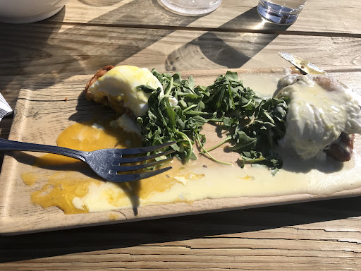Read moreWe decided to try this place on a beautiful spring Sunday, so we expected crowds. We waited between 30-45 min for a table - no big deal. We ordered within 10 min after being seated. We then waited around an hour for our food. When we inquired about the status of our order, we were met with a kind gesture from the owner, a free order of chips, and a sincere apology about the wait and the kitchen being overwhelmed and under equipped. That was all code for âwe forgot your orderâ as we saw the servers cleaning other tables and the kitchen staff pop outside every few min for some sunshine, but fine. Mistakes happen. The kicker was the food. The photo is their âBenny Benny Boo Booâ which is advertised as jalapeño waffles and eggs and hollandaise sauce, or their take on eggs Benedict. I was served 2 minuscule triangles of waffles topped with eggs swimming in a âhollandaiseâ sauce and wilted greens (thatâs after 1 bite - not extended time in the sun). Again, I know that orders get forgotten sometimes, but I would have preferred the kitchen hustle to get it out lightening fast upon realizing the error or make plate look amazing. We appreciated the apology, but the food didnât make up for anything. Even without an hour wait, I wouldnât go back for the food. The portions and presentation need work (just put a whole waffle on the plate for starters) and the flavor was just meh. No spiciness to my jalapeño waffles and the sliders the others ordered were fine, but also teeny tiny with a minuscule amount of cheese and a few pieces of cooked onions. Their ideas are on point, but they need better execution.