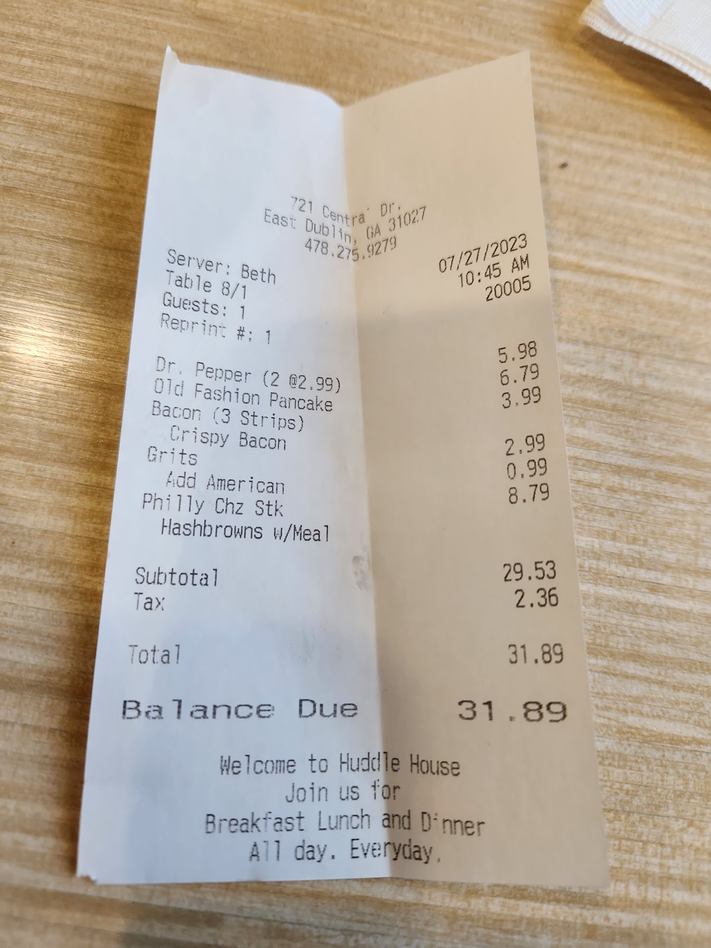 To follow up from my previous review as you can see huddle house responded. So my question is how does an establishment like this continues to let this same server beth still be able to serve due to the review that was left by the huddle house response. I don't get it. This type of behavior shouldn't be tolerated. I called corporate office the following day and they told me within 48hrs I would get a response back from them and haven't heard anything I have been calling and calling no answer so I feel like there dodging me. Veiwers should I file a civil suit or let it be water under a bridge