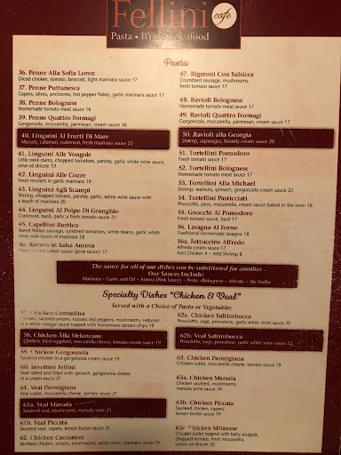 Had a terrible experience here a few weeks ago. Yes I waited to post a review as I contacted Fellini's first and wanted to give the owner or manager a chance to rectify the issue but no one made any attempt to contact me OR make the situation right. It was Veteran's day when we went to Fellini's with my brother who is a vet and he specifically chose this establishment. We went with his wife, myself, him, and my three nephews. When we arrived we saw that there was a large party of about 30 people that were on one half of the restaurant. I didn't think this would be an issue with our service or food quality but it was. First the server took our bottles of wine from the table for around 20 minutes until we flagged down another server to retrieve our bottles. I don't know why they were taken off the table in the first place and not opened in front of us right away but we let that go. We ordered the calamari appetizer, 2 seafood medley's, a penne dish, and for the kids grilled chicken with a side of pasta and a chicken cutlet for my nephew. The calamari took over 45 minutes to arrive and was poorly plated, no side salad was on the dish (which the dish always comes with), and tasted greasy and was all tentacles and no rings. Very disappointing. The kids food arrived with the appetizer. My nephew loved his grilled chicken but let me emphasize that it was two very thin pieces of chicken and a small side of pasta. We were charged a whopping $19 which would have been fine if this dish was adult portions but it was not. My other nephew had a few pieces of chicken cutlet on a plate and the cost was also $19 and it wasn't an adult portion. If you don't offer kid meals then the least you could do is give the kids adult portion to justify the cost. Our 3 meals for the adults didn't arrive for an hour after the appetizer. It was ridiculous. We received no apology for the wait in food. If you can not be properly staffed when you have a large party in the restaurant then you should close the restaurant for the party. My sister and I were served the seafood medley which we normally love despite the $35 cost because it's delicious and loaded with seafood. It wasn't this time. The dish had cold crab meat on top, no shrimp or calamari as mentioned in the description and just a few clams and mussels. When the bill arrived, my sister tried to nicely speak with the manager who couldn't care less about our concerns, horrible service, and being overcharged. After being in the restaurant for close to 3 hours, the kids were miserable and we were all ready to leave. I will never return to this restaurant. Had the manager or owner contacted me a few weeks ago, I could have overlooked this experience and been back. I've worked in the restaurant industry for over ten years so I am sympathetic to the struggles of the wait staff, chef, and pleasing customers but anytime I've had a bad experience at a restaurant the owner has always made it right. The manager/owner here didn't even care to respond to my email or give me a call. Do better. I will not be returning, nor will my family and friends who often frequent...