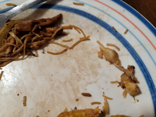 All(2 adults, 1 teen)agreed the wings were tasty. Shrimp-n-broccoli, beef fried rice and General Tso's were good as well. My Mei fun was another story altogether. 1. There was a small piece of plastic bag mixed in the rice noodles. 2. I bit a piece of hard gristle in it that was supposed to be a bite-sized sliced piece of chicken. 3. The noodles were brown in color. Mei fun is usually white with just vegetables and your choice of chicken, shrimp or beef. It's not prepared like lo mein and is a healthier menu choice.