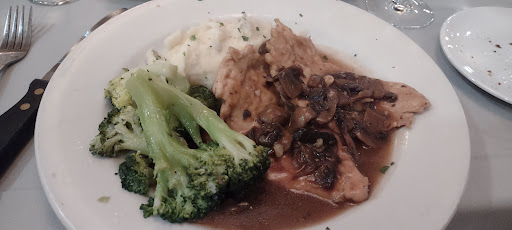 Chicken parmesan was soggy on bottom, rubbery all around the edges and dry on the top, was overshadowed by the fresh boxed pasta and marinara sauce that was piping hot!! And was the highlight of the meal. Along with 2 other reports from our table about the food, the cold management , kind Off-handedly took our entrees off the bill.